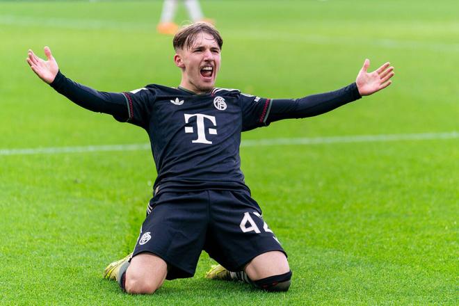 卡爾的足球之路始于法蘭克福青訓(xùn)營(yíng),2022年,拜仁慕尼黑敏銳地發(fā)現(xiàn)了這位少年的過(guò)人天賦,將其納入麾下。在拜仁青年隊(duì)時(shí)期,他就已展現(xiàn)出恐怖的得分效率,30場(chǎng)正式比賽中斬獲34球并送出11次助攻,為日后躋身一線隊(duì)埋下伏筆。對(duì)他而言,足球與學(xué)業(yè)的平衡是職業(yè)生涯初期的獨(dú)特注腳:在歐冠對(duì)陣布魯日的關(guān)鍵戰(zhàn)役前,他上午仍在學(xué)校完成課程,獲準(zhǔn)提前離校備戰(zhàn)后,還需在拜仁訓(xùn)練基地通過(guò)家教補(bǔ)習(xí)落下的內(nèi)容。這種“校園與賽場(chǎng)雙線并行”的經(jīng)歷,不僅錘煉了他的時(shí)間管理能力,更塑造了他沉穩(wěn)務(wù)實(shí)的心態(tài)。